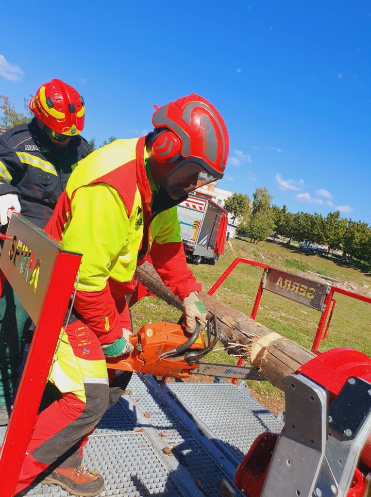 Usposabljanje gasilcev za delo z motorno žago v nevarnih razmerah