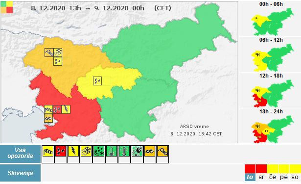 Zaradi obilnega sneženja pa se bo predvsem v Julijskih Alpah znova povečala nevarnost snežnih plazov.