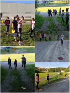 Srečanje ta teden je bilo zelo sproščujoče in športno. Ker je bilo vreme sončno, toplo in prav nič vetrovno, smo bili zunaj in odigrali prilagojeno verzijo čedalje bolj popularnega “disk golfa”.