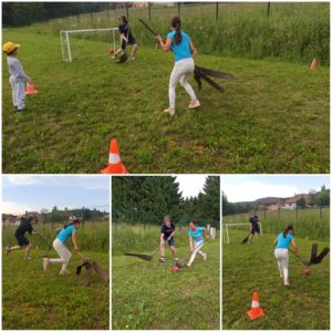Tudi ta teden je bilo srečanje športno. Vreme je bilo lepo in toplo tako, da smo bili na športnem stadionu. Poskusili smo nekaj novega, kar se je izkazalo za veliko zabavo. Odigrali smo “hokej s požarnimi metlami”.