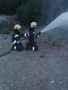V četrtek so imeli pripravniki še zadnje interne vaje na temo Osnov nevarnih snovi ter gašenja vnetljivih tekočin. Teoretično so spoznali znake za označevanje nevarnih snovi pri prevozih v cestnem in drugem prometu ter si pogledali aplikacijo Nevsnov za prepoznavanje lastnosti različnih nevarnih snovi. V praktičnem delu so vadili zavarovanje območja ter prve ukrepe ob posredovanju pri nesrečah z nevarnimi snovmi. Pogledali so si kje se nahaja oprema za nevarne snovi v domačem GVC 16/25. V drugem delu vaje so pripravniki ob navzočnosti inštruktorjev vadili gašenje vnetljive tekočine z ročnim gasilnim aparatom, postavili cevovod za gašenje s penilom in preizkusili gašenje s hitronapadalnim visokotlačnim vodom iz vozila. Nekaj fotografij z vaj si lahko ogledate na POVEZAVI v fotogaleriji.