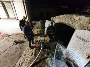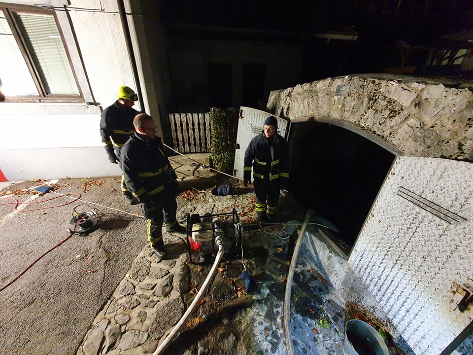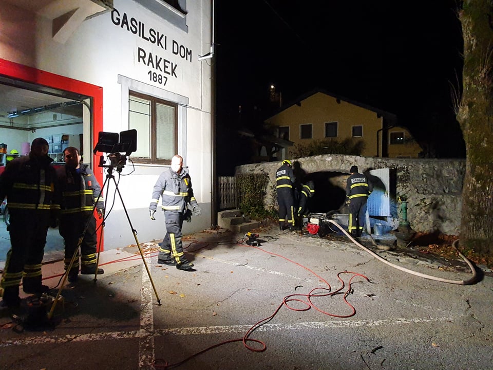 Iz vodnjaka poleg gasilskega doma smo s pomočjo muljne črpalke na bencinski pogon in električno potopno črpalko vadili prečrpavanje večjih količin vode. Zaradi že slabe vidljivosti smo postavili tudi razsveljevanje mesta posredovanja s pomočjo reflektorjev.