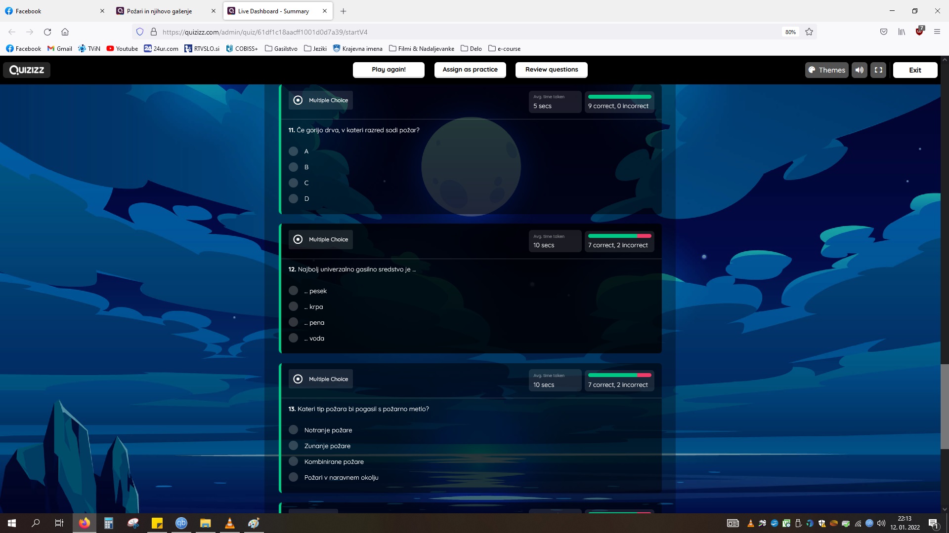 Ta teden smo s pomočjo strani https://quizizz.com obnovili znanje o požarih.