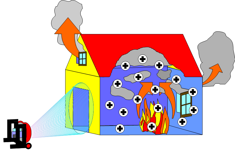 - naravno prezračevanje: izvajamo s pomočjo gibanja zraka, je najenostavnejši način za katerega se lahko odločimo. Vodja intervencije uporabi privetrno stran za vstop v objekt. Tako so vstopna vrata že odprtina za vstop zračnega toka v objekt.