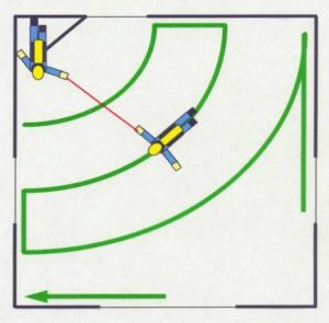 - vejasta tehnika: se uporablja v velikih prostorih, garažah, skladiščih, itd. Poslužujemo se jo pri prostorih večjih od 400 m2, kjer lahko deluje tudi več skupin istočasno. Pri tej tehniki je potrebno uporabljati tudi dodatno opremo, kot so daljše glavne vrvi. Vodja skupine pri vhodu v prostor pritrdi en konec vrvi na fiksno sidrišče in nato skupaj z gasilcem napredujeta do nasprotne strani drugega sidrišča. Tam pritrdita tudi drugi konec vrvi in poskrbita, da je vrv rahlo napeta. S tem razdelita prostor na dve coni. Oba napadalca nato vsak po svoji strani preiskujeta prostor ali območje, dokler ne prideta na drugo stran.