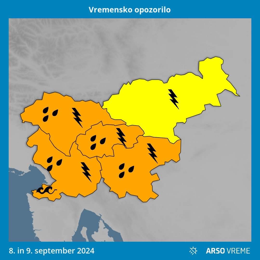Obveščamo vas, da je bilo za naše območje izdano opozorilo zaradi obilnega deževja. V obdobju od nedelje zvečer do ponedeljka zjutraj lahko pade do 150 mm dežja. Pozivamo vas, da sprejmete ustrezne preventivne ukrepe. Izkušnje iz preteklih let kažejo, da lahko kombinacija vremenskih dejavnikov (topel in vlažen zrak, vdor hladnih zračnih mas, okrepljen jugozahodni veter, … itd.) povzroči obilne padavine, poplave ali druge nevšečnosti tudi na območju Rakeka.