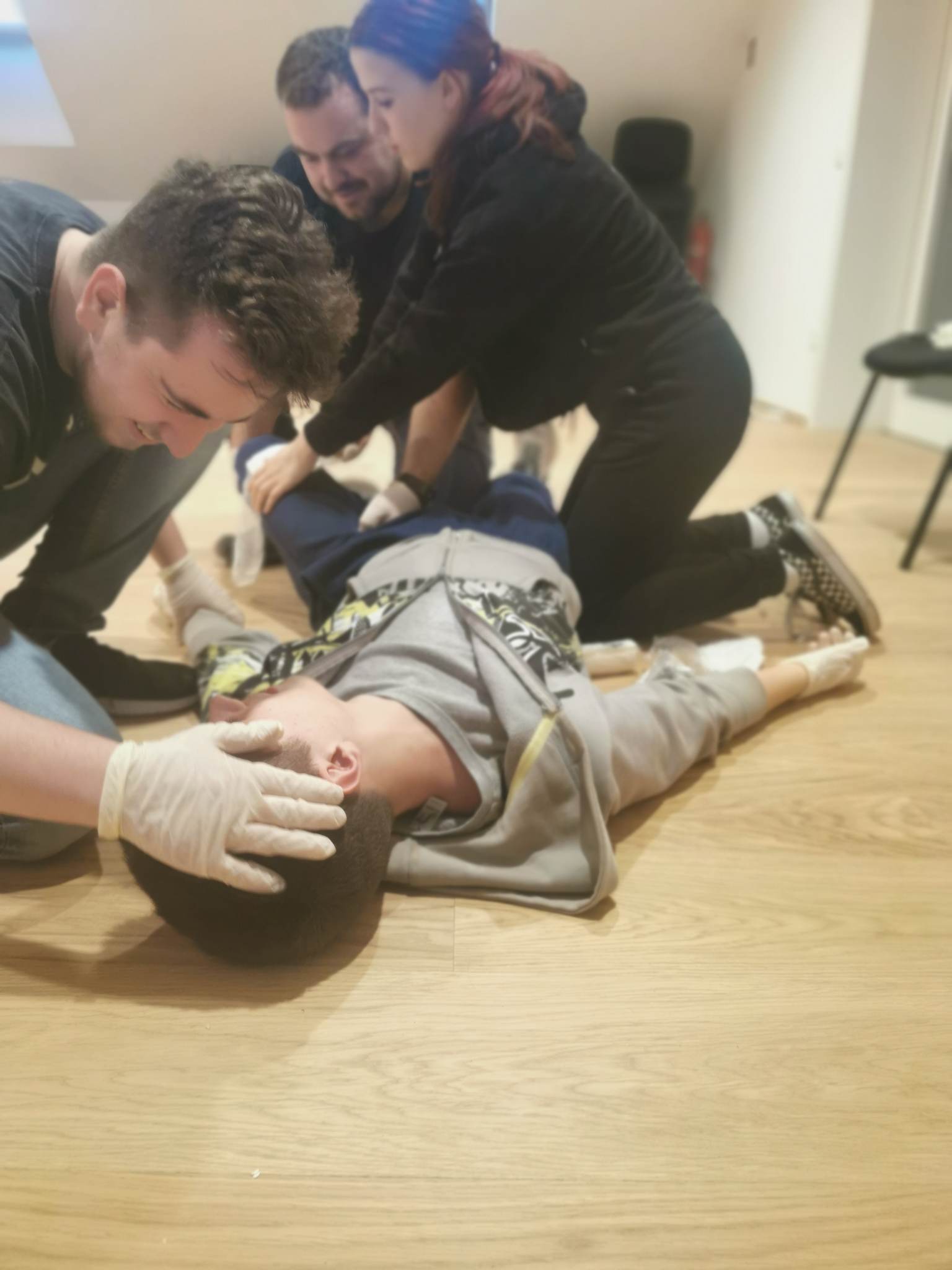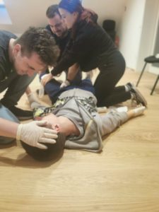 Tokratne vaje operative smo izvajali v društvenih prostorih in so temeljile na zaustavljanju krvavitev in oskrbi ran. Gasilci so delali v skupinah in se izmenjavali na štirih scenarijih. Prvi poškodovanec je imel odrezano nogo nad kolenom, drugi prestreljeno nogo, tretji tujek v dlani in četrti zaprt zlom roke. Gasilci so morali izvesti vse postopke in pravilno oskrbeti poškodovance. Tekom vaj smo ponovili mesta digitalnega pritiska, kako se naredi kompresijska obveza z dokončno oskrbo krvavitve, eshmarhova preveza, stabilizacija tujka in mobilizacija uda. Poudarek je bil na pravilnem položaju ponesrečenca in spremljanju njegovega stanja, da ne pride do šoka.