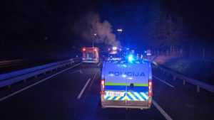 Ob 0.53 je na primorski avtocesti med priključkom Logatec in priključkom Unec, občina Logatec, v S.O.S. niši gorelo kombinirano vozilo. Gasilci PGD Dolnji Logatec, Rakek in Cerknica so zavarovali in razsvetljevali kraj dogodka, pogasili požar ter pregledali vozilo in okolico. Vozilo je uničeno.