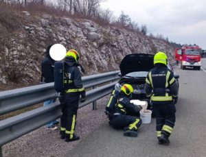 Ob 16.12 je na avtocesti Unec–Postojna pred Ravbarkomando, občina Cerknica, gorelo osebno vozilo. Do prihoda gasilcev PGD Cerknica in Rakek je bilo vozilo že pogašeno s strani mimovozečih voznikov tovornih vozil, zato so gasilci zavarovali kraj dogodka, pregledali vozilo in posuli iztekle tekočine.