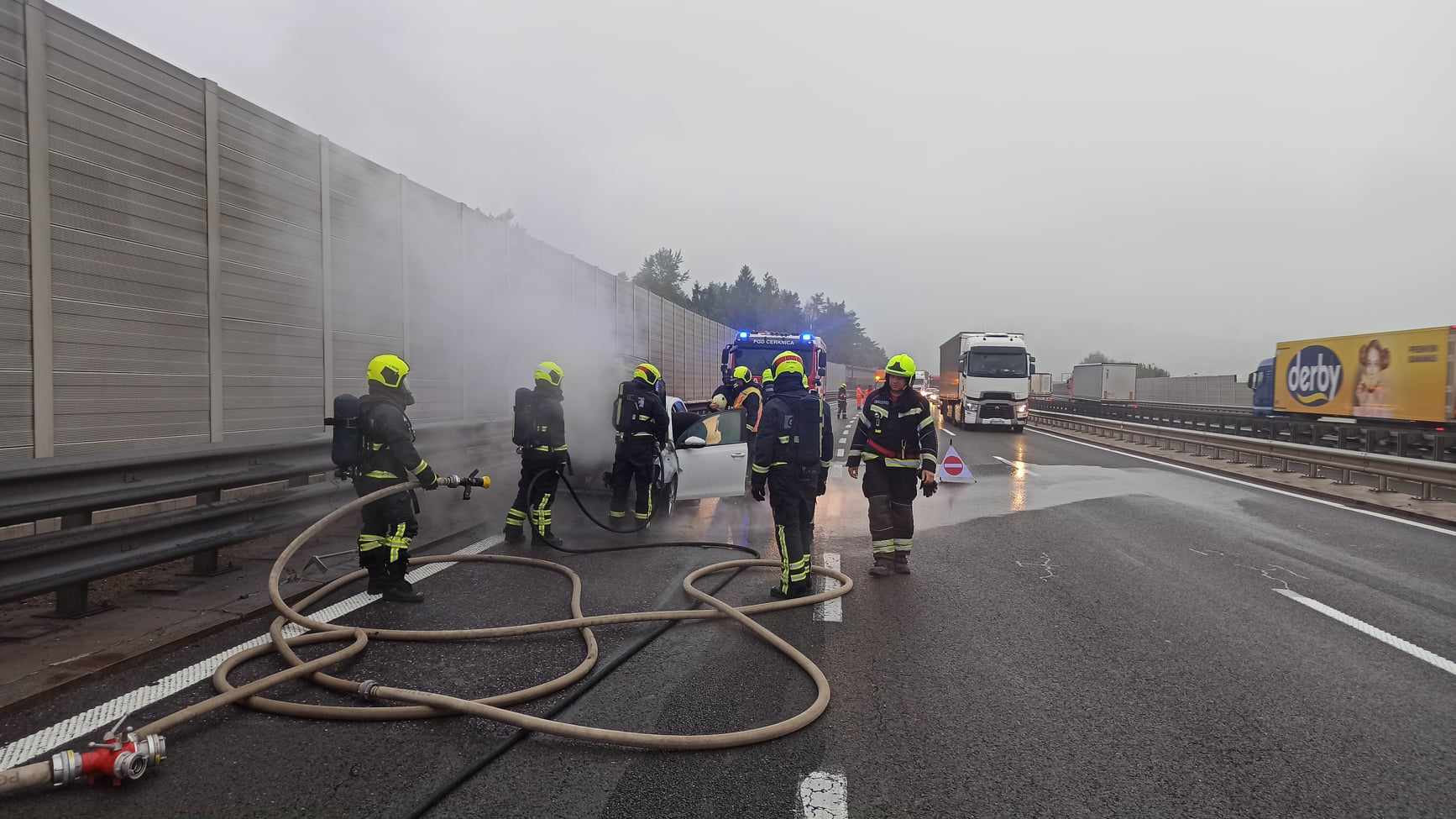 Ob 17.05 je zagorelo osebno vozilo na avtocesti Unec–Postojna v občini Cerknica. Posredovali so gasilci PGD Rakek in Cerknica, ki so zavarovali kraj dogodka, pogasili požar v predelu motorja, ga ohladili in pregledali s termovizijsko kamero.
