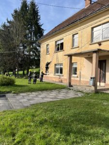 Aprilske vaje operative so bile namenjene vadbi postavljanja in uporabe lestev. Poudarek vadbe je bil na pravilni postavitvi stikalne lestve in lestve z oporniki, pravilnemu gibanju po lestvi, sestopu iz lestve skozi okno in nato nazaj na lestev. Po obnovljenih osnovah se je vadilo še napeljavo cevovoda po lestvi za potrebe gašenja v objektu ter gašenje iz same lestve. Po vsaki vaji je sledila kratka analiza.