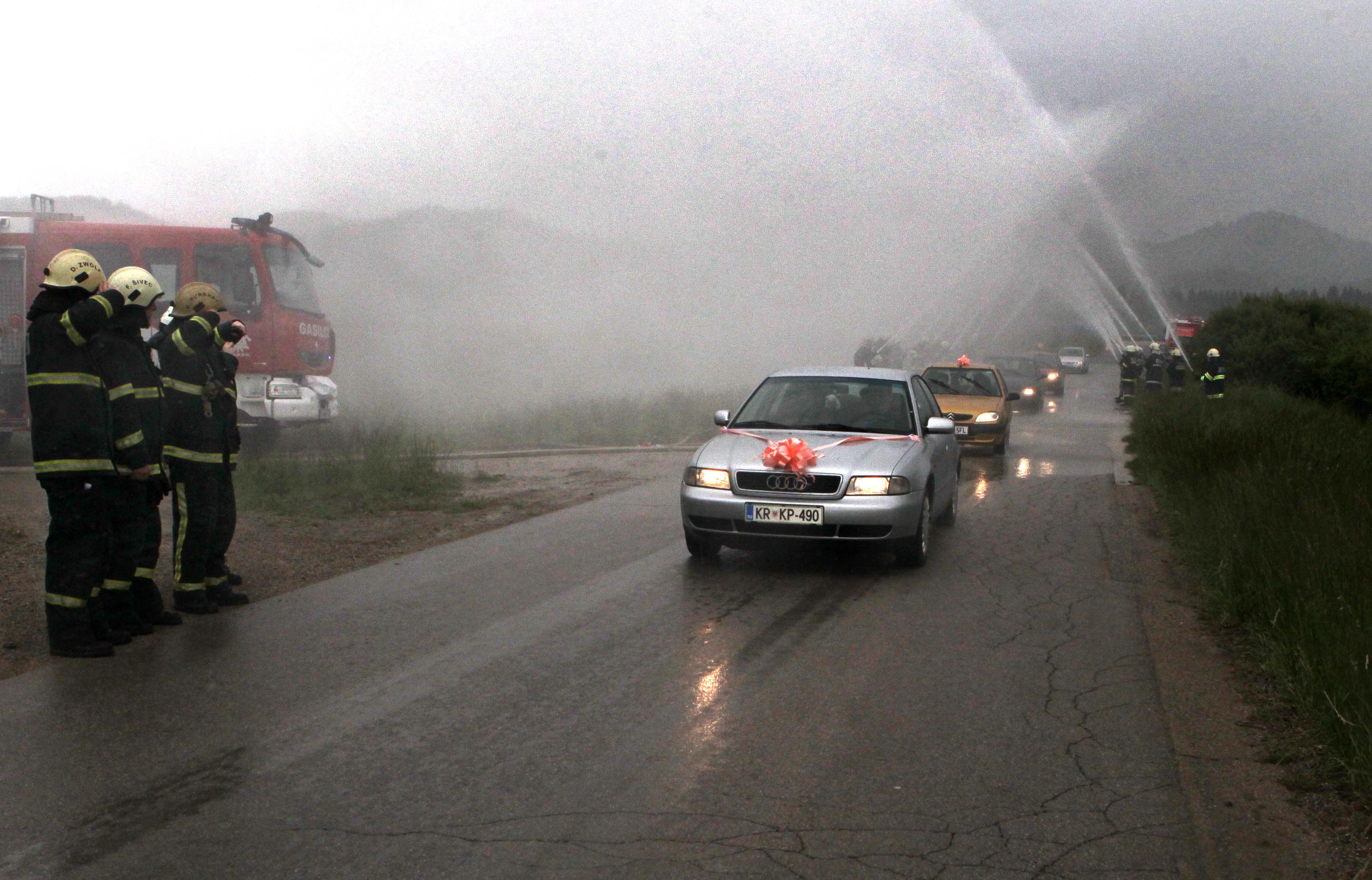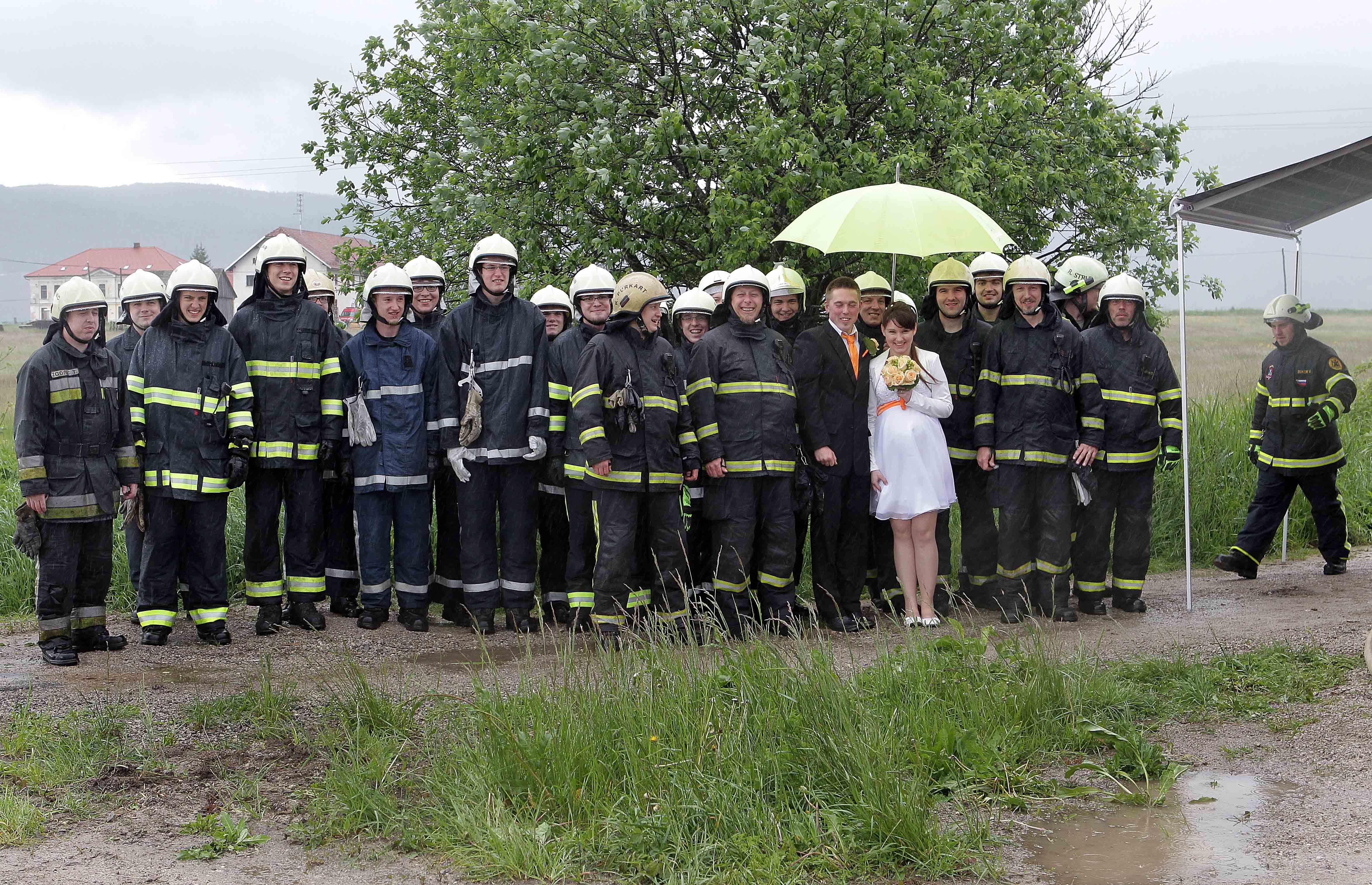 V soboto, 25.5.2013 na Dan mladosti, se je poročil naš operativec Modic Miha. Seveda tak dogodek ni mogel miniti brez nas gasilcev, posebej ker gre za dolgoletnega in izkušenega operativca. Tako smo že v petek pomagali pri postavljanju mlaja, ušel pa mu ni niti hladen “tuš” iz VT ročnika. V soboto smo s pomočjo PGD Ivanje selo, PGD Grahovo, PiGD Kovinoplastika Lož in PGD Stari trg v bližini grada Snežnik pripravili slavoloke iz vodnih curkov. Kljub izredno slabemu vremenu (dež in veter) je bilo v čast poroke operativca skupno postavljenih 18 curkov.