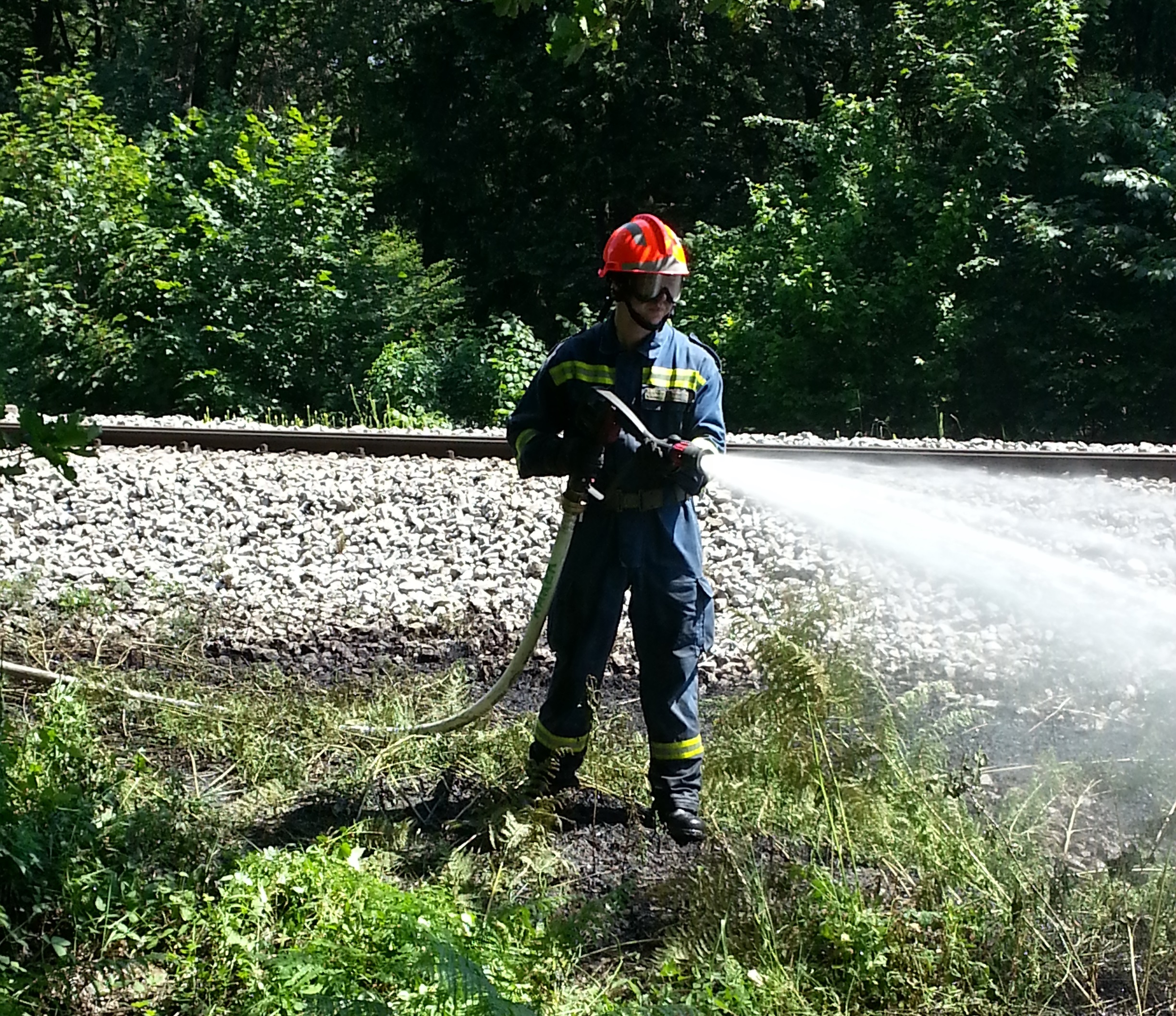 Ob 13.21 je ob železniški progi Rakek–Postojna, občina Cerknica, gorela suha trava in grmičevje. Požare na treh lokacijah, skupne površine en hektar, so pogasili gasilci PGD Rakek in Unec. Težave sta povzročala težko dostopen teren in otežena komunikacija zaradi motenega signala ZARE (železnica). Linije za dobavo vode se je do lokacij požarov potegnilo tako, da se je cevi vkopalo in napeljalo pod tiri. Ves čas dela se je kontroliralo prihode vlakov, strojevodje pa so dobili nalogo, da na lokaciji Postojna – Rakek in obratno ves čas uporabljajo zvočne signale. Svoje je prispevala tudi vročina, ki je še dodatno dehidrirala gasilce.