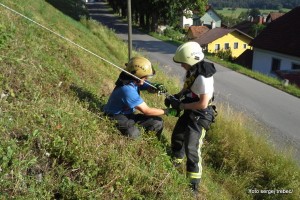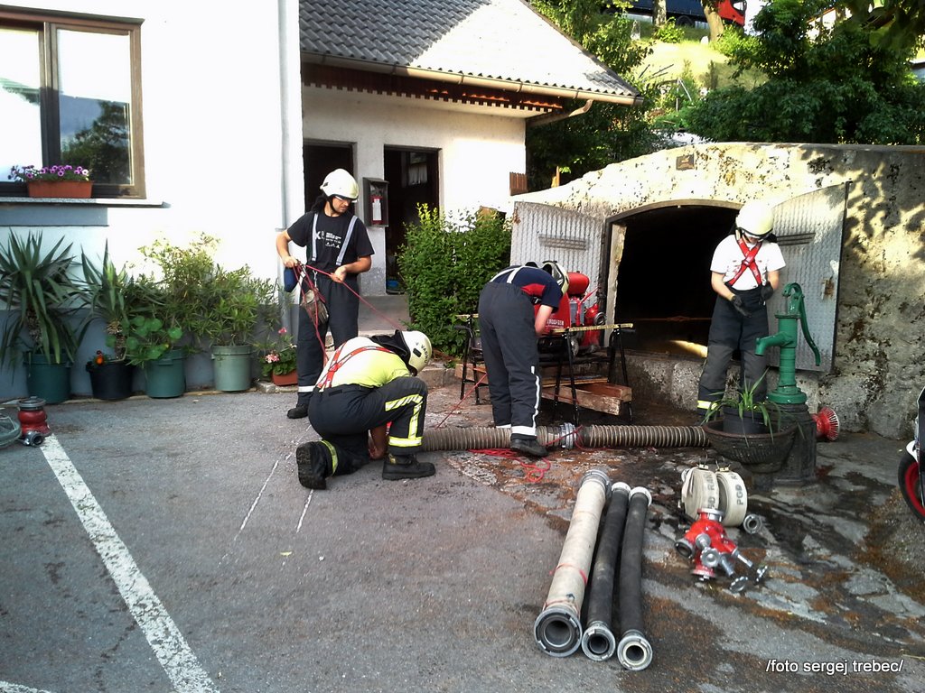 Tudi tokratne operativne vaje so potekale na dveh delovnih točkah. Prva delovna točka, katera se je odvijala pred gasilskim domom je zajemala delo z MB 8/8: osnove delovanja, priprava na črpanje in postopki črpanja v primeru odprtih cevovodov (poplave). Po teoretičnem delu je vsak praktično preizkusil delo z MB 8/8 in vzpostavil črpanje iz rezervoarja. Druga delovna točka je zajemala ponovitev izdelave sidrišča za transport nosil s ponesrečencem po strmem pobočju, izdelavo sidrišča za spust in tehnike spuščanja po vrvi.