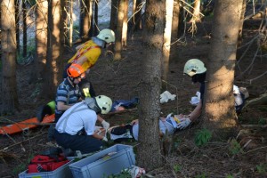 Tokratne vaje bolničarjev so bile zastavljene malo bolj kompleksno, z vključevanjem več gasilskih prvin in delom na terenu. Po scenariju je prišlo do nezgode v gozdu, kjer je delavca poškodovalo padajoče drevo. Zaradi težko dostopnega terena je bilo potrebno poskrbeti za varnost posredovalcev in samega poškodovanega. Na podlagi scenarija se je po prihodu na lokacijo formiralo dve skupini, kateri sta imeli vsaka svojega vodjo. Skupina bolničarjev je oskrbela ponesrečenca in ga pripravila na transport, tehnična skupina pa je pripravila teren in poskrbela za varovanje transporta. Poudarek vaje je bil na delu skupine, komuniciranju med obema skupinama in vodjo, vodenju in poročanju ter pravilnih postopkih dela in oskrbe. Zaradi pomanjkanja določene opreme – zajemalna in koritasta nosila so v planu – se je te simuliralo z navadnimi, zaradi vročine pa se je vadilo brez zaščitne jakne. Fotografije iz vaje si lahko pogledate v galeriji.
