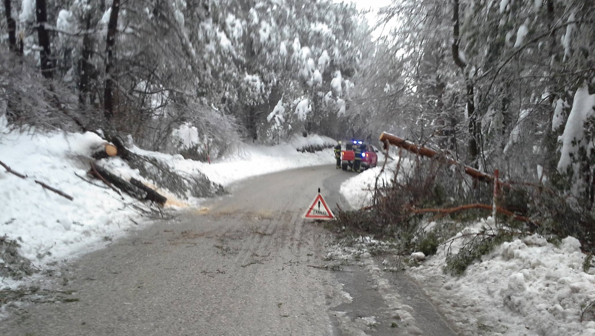 - ob 17.18 je na cesto Unec proti Postojni padlo drevo (več dreves),