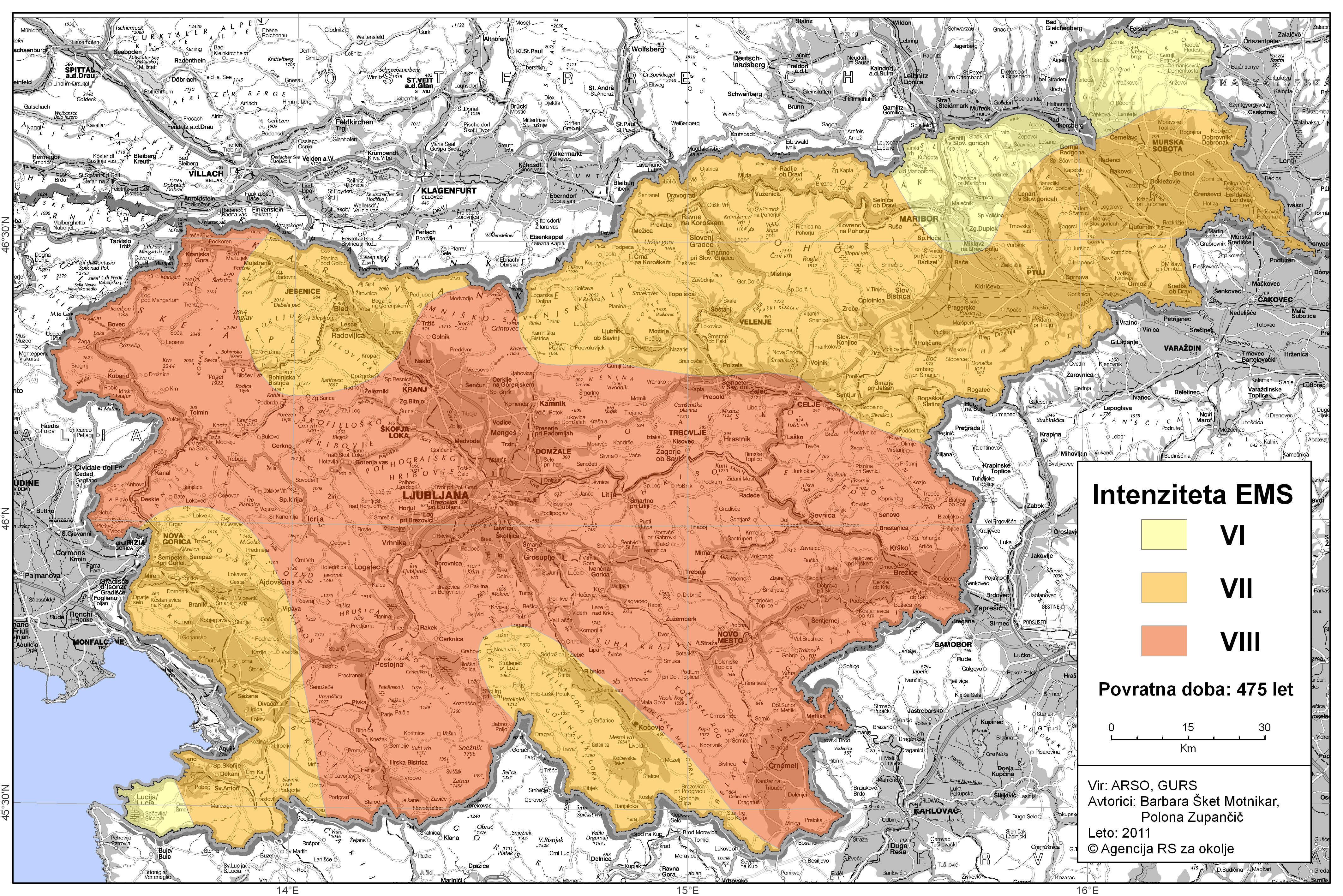 Ozemlje Slovenije spada po številu in moči potresov med dejavnejša območja, saj leži na potresno dejavnem južnem robu Evrazijske tektonske plošče, na severozahodnem robu sredozemsko-himalajskega seizmičnega pasu, ki je eden od potresno najdejavnejših na Zemlji. Na majhnem slovenskem prostoru se stikajo tri regionalne tektonske enote: na severu in zahodu Alpe, na južnem, jugozahodnem in osrednjem delu Dinaridi in na severovzhodu Panonski bazen. Razlogi za nastajanje številnih šibkih, pa tudi močnih potresov so v zapleteni geološki in tektonski zgradbi našega ozemlja, ki leži na manjši Jadranski plošči, stisnjeni med Afriško na jugu in Evrazijsko na severu. Jadranska plošča se vrti v nasprotni smeri urinega kazalca, kar povzroča predvsem na severni in vzhodni strani različna premikanja. Južna in zahodna Slovenija ležita na severnem delu plošče, ki je zelo deformiran in narinjen na osrednji, manj deformiran del plošče. Zaradi premikanj v različnih smereh prihaja med njimi do napetosti, ki so lahko vzrok za nastanek potresov. Premikanja plošč povzročajo na ozemlju Slovenije napetosti v smeri sever-jug , ki se sprošča v potresih ob prelomih severozahod-jugovzhod (dinarska smer) in severovzhod-jugozahod (prečnodinarska smer), ter ob narivnih strukturah, ki potekajo v smeri vzhod-zahod. Stopnje in učinke evropske potresne lestvice lahko vidite tule. Vir: arso