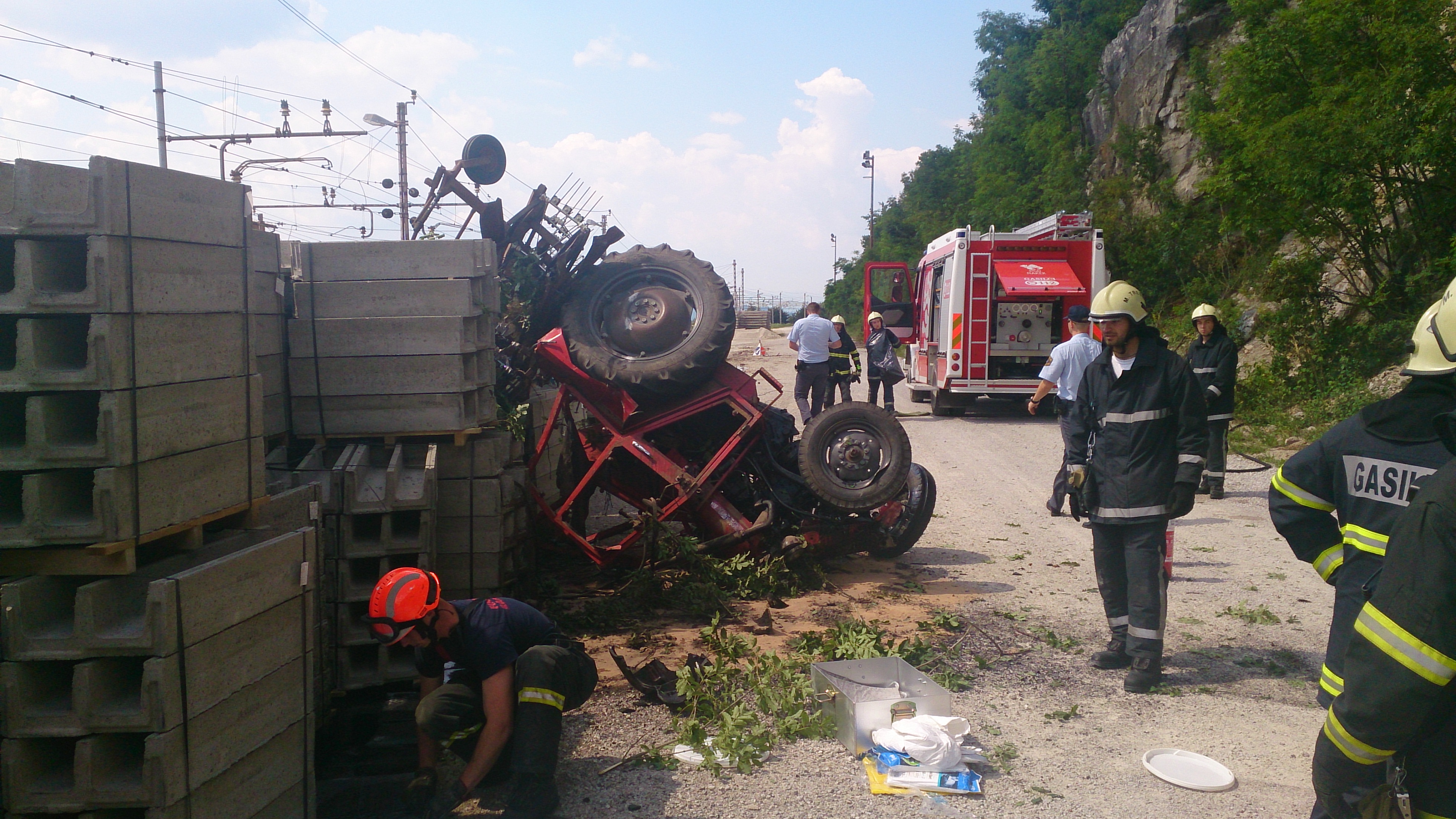 Ob 14.53 so na Rakeku, občina Cerknica, gasilci PGD Rakek in PGD Cerknica posredovali po delovni nesreči v bližini železniške postaje na Rakeku. Na travniku parkiranemu traktorju so popustile zavore, zapeljal se je po pobočju in nato padel preko 15 metrske pečine. V nesreči ni bil nihče poškodovan. Gasilci so vršili požarno varovanje, odklopili akumulator, s pomočjo vitla postavili vozilo na kolesa ter poskrbeli za omejitev iztekanja goriva. Delavci podjetja Kemis so dokončno odstranili iztekajoče tekočine (nafta in olje). Nekaj fotografij si lahko pogledate tule.