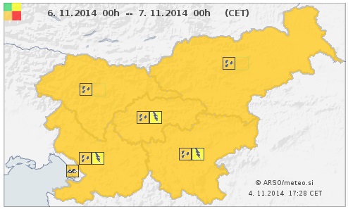 Padavinsko obdobje se bo nadaljevalo do predvidoma sobote 8.11.2014. Priporočamo previdnost in redno spremljanje meteoroloških in hidroloških napovedi in opozoril. Radarsko sliko padavin in opozorila lahko spremljate tule.