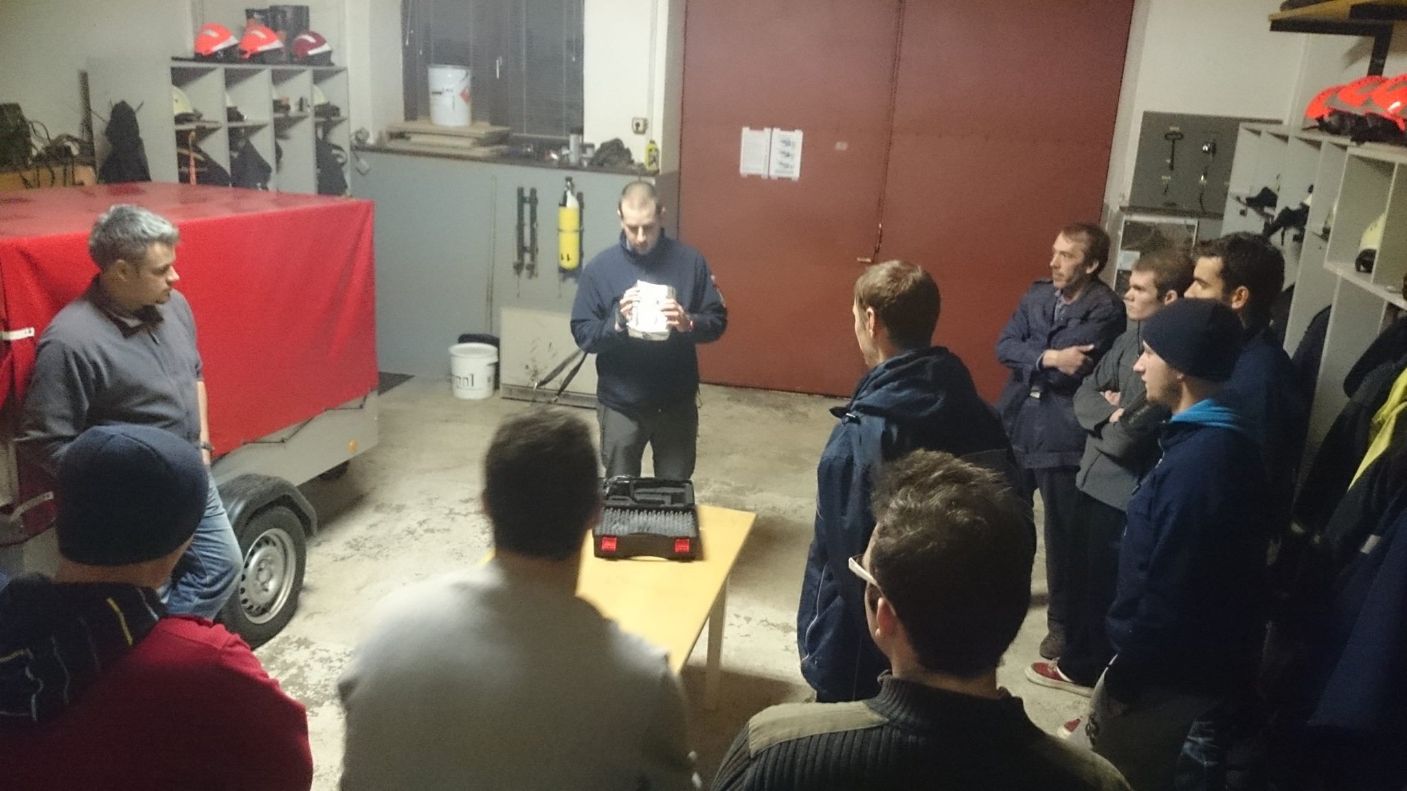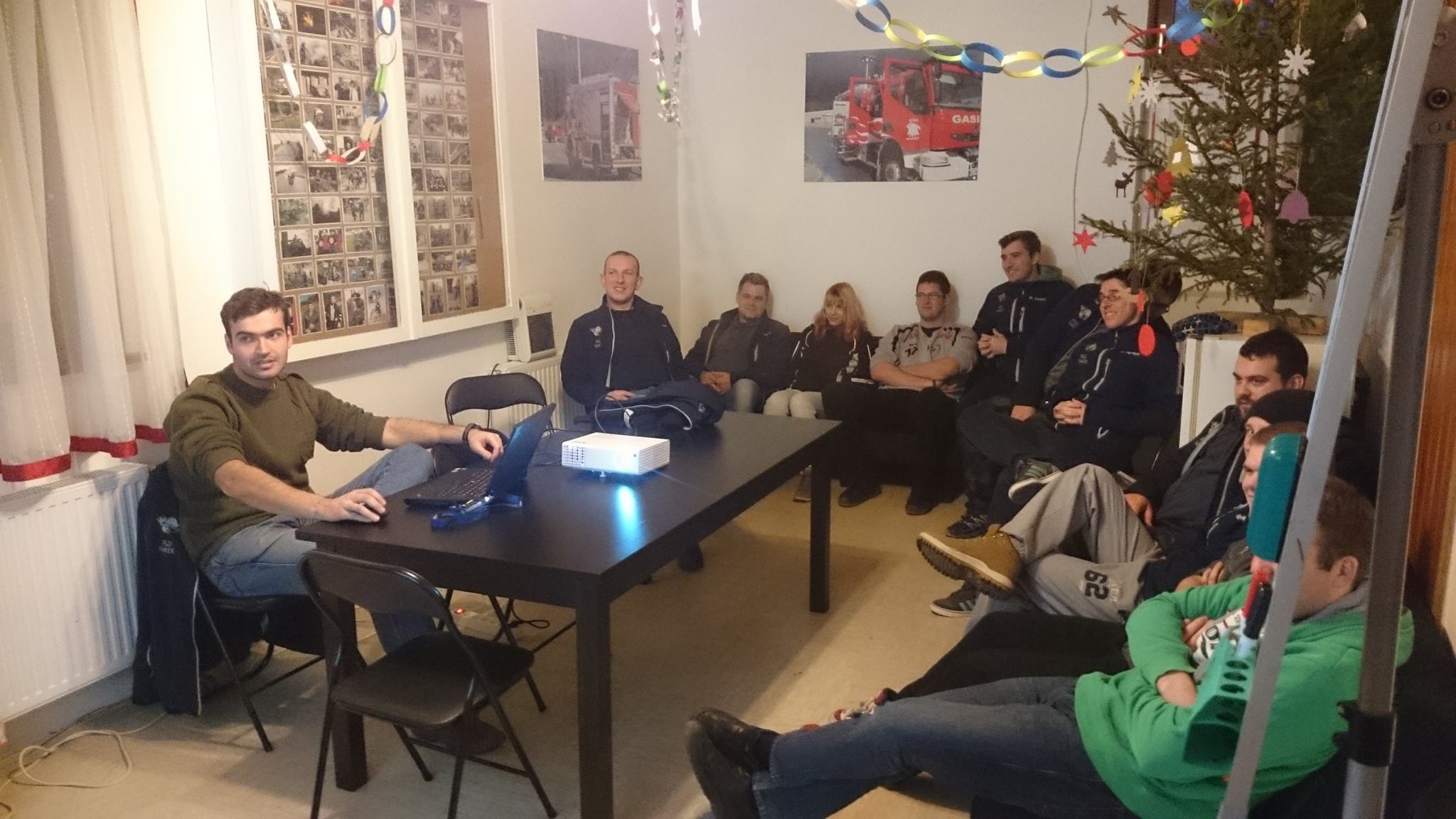Prve usposabljanje v letu 2015 je bilo predavanje na temo dimniških požarov in predstavitev termo kamere. Na prvem delu se je preko predavanja spoznalo sestavo dimnika, vzroke za nastanek dimniških požarov, znake dimniškega požara, nevarnosti in ukrepe ob gašenju, postopke gašenja in opremo za gašenje dimniških požarov. Poudarek predavanja je bil na postopku posredovanja, saj se dimniški požar smatra kot požar v stanovanjskem objektu, posledično se vsak poziv vzame kot zelo resna zadeva in je potrebno izvoziti z ustrezno tehniko in gasilci. Za konec prvega dela je sledila predstavitev opreme, katero imamo v GVC 16-25 za potrebe gašenja dimniških požarov. V drugem delu usposabljanja pa je sledila predstavitev termo kamere in delo z njo, katero je izvedel gasilec iz PGD Cerknica. Predstavljeno je bilo delovanje in njene lastnosti, nato pa je imel vsak možnost preizkusiti termo kamero.