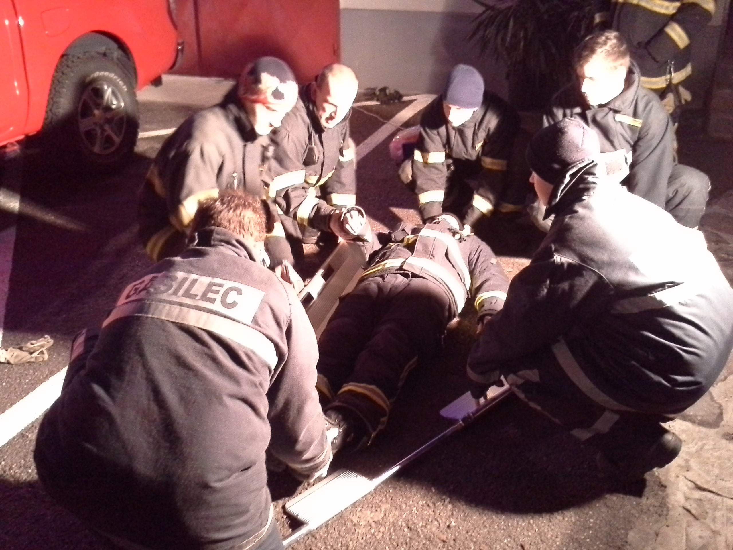 Na tokratnih vajah bolničarjev smo vadili delo z zajemalnimi nosili. Ponesrečenca smo na nosila naložili na tri načine: log roll – ponesrečenca prevalimo na bok, tako da jih popolnoma odpremo in zajamemo ponesrečenca, ter s polovičnim odpiranjem. Izvedla se je tudi pravilna imobilizacija ponesrečenca in pritrditev opore za vrat. Potem, ko so vsi preizkusili vse tri načine nalaganja na nosila je sledilo delo v skupinah. Vsaka od skupin je morala izvesti pristop k poškodovanemu motoristu, sneti motoristično čelado, izvesti pregled poškodovanca, imobilizacijo vrata s pomočjo vratne opornice in naložiti poškodovanca na nosila.