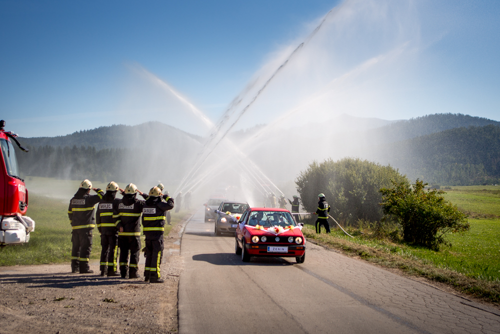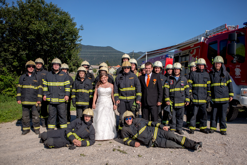 Gasilci PGD Rakek in PGD Stari trg z mladoporočencema