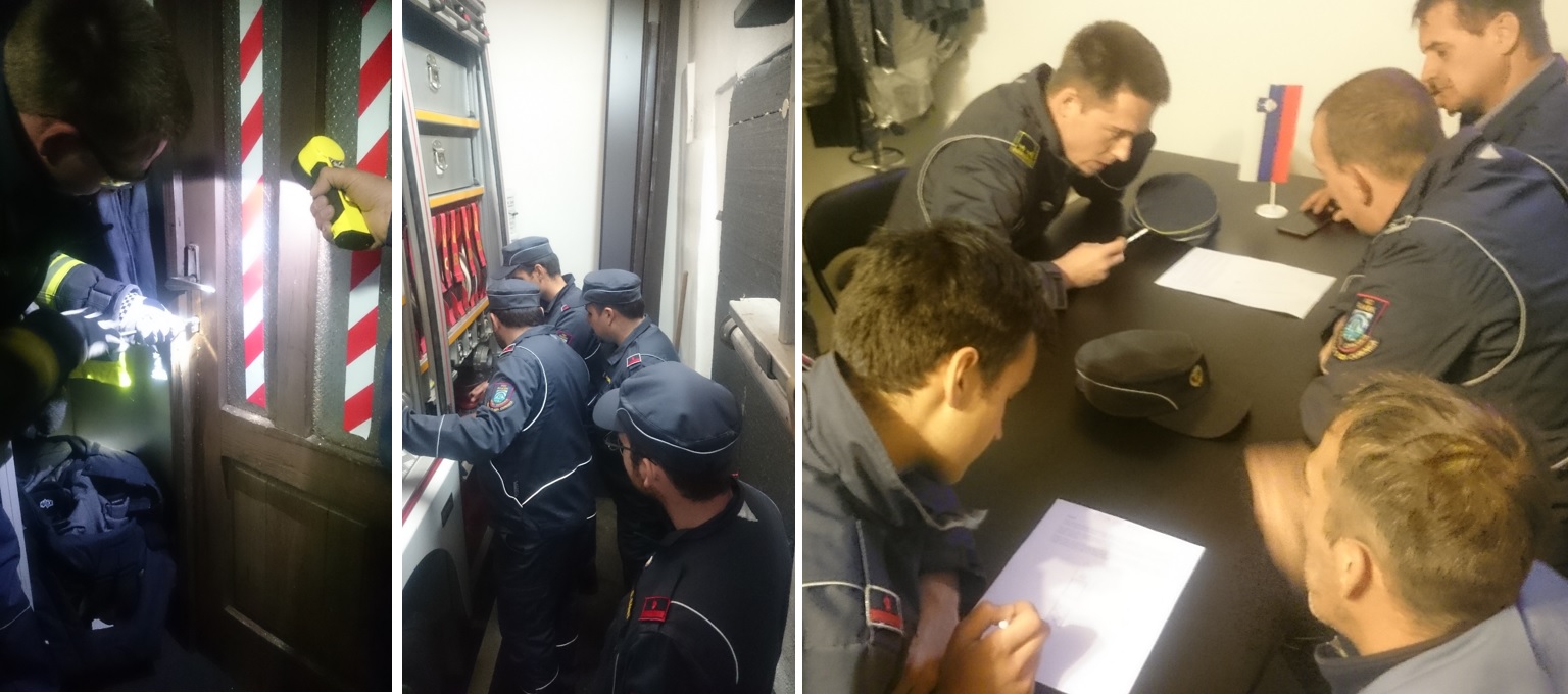 Tokratne vaje operative smo zaradi dežja izvedli v gasilskem domu. V prvem delu smo imeli kratko predavanje in debato glede gašenja na višini (industrijski objekti), kjer smo na podlagi izkušenj iz gašenja podjetja Alumar sestavili standardni operativni postopek za postavitev cevovodov na streho. Praktično se bo postopek preizkusilo na naslednjih vajah operative. Sledilo je delo po skupinah, kjer smo teoretično reševali različne scenarije, katere je nato vsaka skupina predstavila v smislu taktičnih odločitev in kako bi zadevo izpeljala. Tako smo obdelali požar stanovanjskega objekta, požar gospodarskega objekta, poplave ter požar osebnega in tovornega vozila na AC. Drugi del vaj je bil sestavljen iz vadbe odpiranja vrat s pomočjo orodja za vlamljanje ključavnic ter poznavanja lokacije opreme po vozilih.