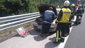 Ob 13.26 se je na AC med Uncem in Logatcem, pri delovni zapori pred Lomom, močno kadilo iz osebnega vozila. Aktivirani so bili gasilci PGD Rakek, Cerknica, Dolnji Logatec in GB Ljubljana. Gasilci iz Cerknice in Rakeka so bili prvi na kraju in so na vozilu, ki mu je odpovedala turbina, odklopili akumulator, posuli razlito olje pod motorjem ter avto pregledali s termo kamero.