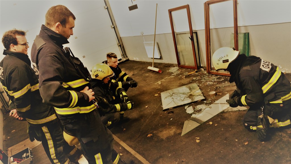 Tokratne vaje smo namenili delu na tehničnih posredovanjih. V prvem delu vaje smo z opremo, katero imamo na voljo, vadili stabilizacijo vozila na boku in iznos poškodovanca, v drugem delu pa smo si kot alternativno verzijo vstopa v objekt pogledali delo z orodjem za rezanje stekla.