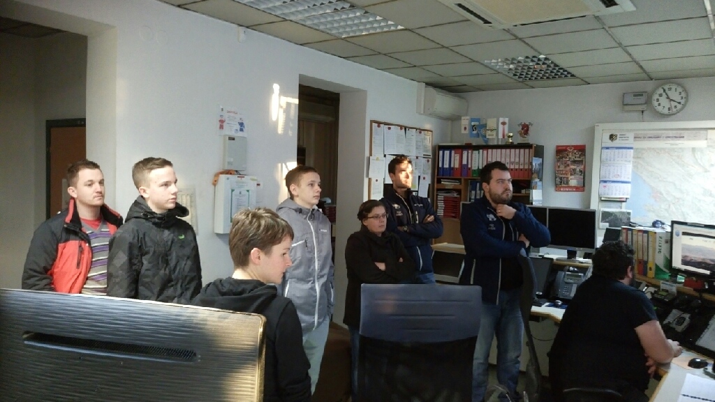 S skupino pripravnikov smo konec decembra obiskali regijski center za obveščanje v Postojni, kjer sta nam dežurna operaterja predstavila način dela v klicnem centru, opisala sistem alarmiranja posameznih interventnih služb in razkazala delovni prostor. Poleg naprav za komuniciranje sta nam pokazala še video-nadzorni sistem za opazovanje Krasa. Kasneje smo obiskali še PGD Postojna, kjer so nam razkazali vozni park in gasilski dom ter predstavili opremo po vozilih.