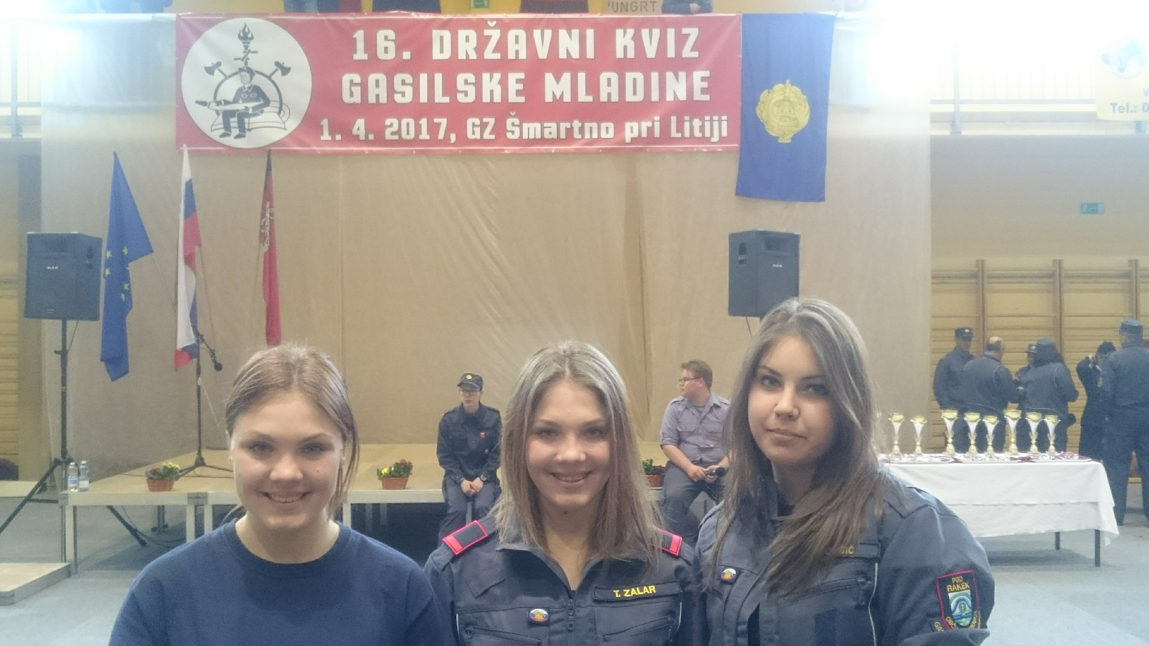 V soboto, 1.4.2017 se je ekipa pripravnic PGD Rakek udeležila 16. Državnega kviza gasilske mladine. Tanja, Sanja in Taja pod vodstvom tovariša mentorja Matjaža Ileršiča smo se že zgodaj zjutraj odpeljale v Šmartno pri Litiji, kjer nas je čakala malica, nato pa težko in zahtevno tekmovanje, kot se spodobi na državnem nivoju. Kljub veselem vzdušju in zagnanosti pa smo končale na 26. mestu. Na pomoč!