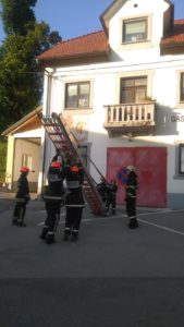 Na junijskih vajah so pripravniki praktično vadili postavitev zavarovanja kraja intervencije, kot enega prvih ukrepov po prihodu na kraj intervencije. Postavili so opozorilne triopane, uporabili prometne stožce za izvedbo delne in popolne zapore cestišča ter s prometnimi loparčki usmerjali oziroma izmenično spuščali enosmeren promet. Drugi del vaj je potekal na temo lestev, njene postavitve in pravilne ter varne uporabe. Pripravniki so v popolni osebni varovalni opremi postavili trodelno gasilsko lestev na objekt, jo pritrdili in vadili pravilno vzpenjanje in spuščanje po njej. Ponovili so tudi navezavo orodja na delovno vrv za dvig orodja na višino.