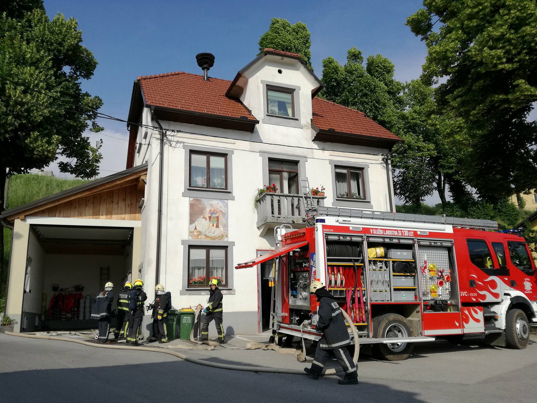 Tokratne redne mesečne vaje operative so bile na temo posredovanja ob požarih v objektih in so bile tematsko nadaljevanje vaj iz meseca maja. Vaje so bile izvedene preko dveh delovnih točk. Na prvi delovni točki se je vadilo postavljanje lestve, pripravo cevovodov in njihova napeljava po/ob lesti ter vstop napadalne skupine preko lestve. Na drugi točki se je izvajalo napade iz vozila GVC 16-25. Vadilo se je napeljavo B voda do trojaka, pravilno postavitev C cevovodov za vstop v objekt, napredovanje in napeljavo cevovodov po stopnišču ter pravilen vstop v goreč prostor. Pri tem se je upoštevalo pravilo, da je vedno ena napadalna skupina v rezervi za potrebe reševanja, upoštevali pa smo tudi nov OPR za notranje napade, kjer za evidenco NN skrbi strojnik. Za zaključek smo si skupaj pogledali kako se napelje rezervni B vod na trojak za primer odpovedi črpalke na vozilu.