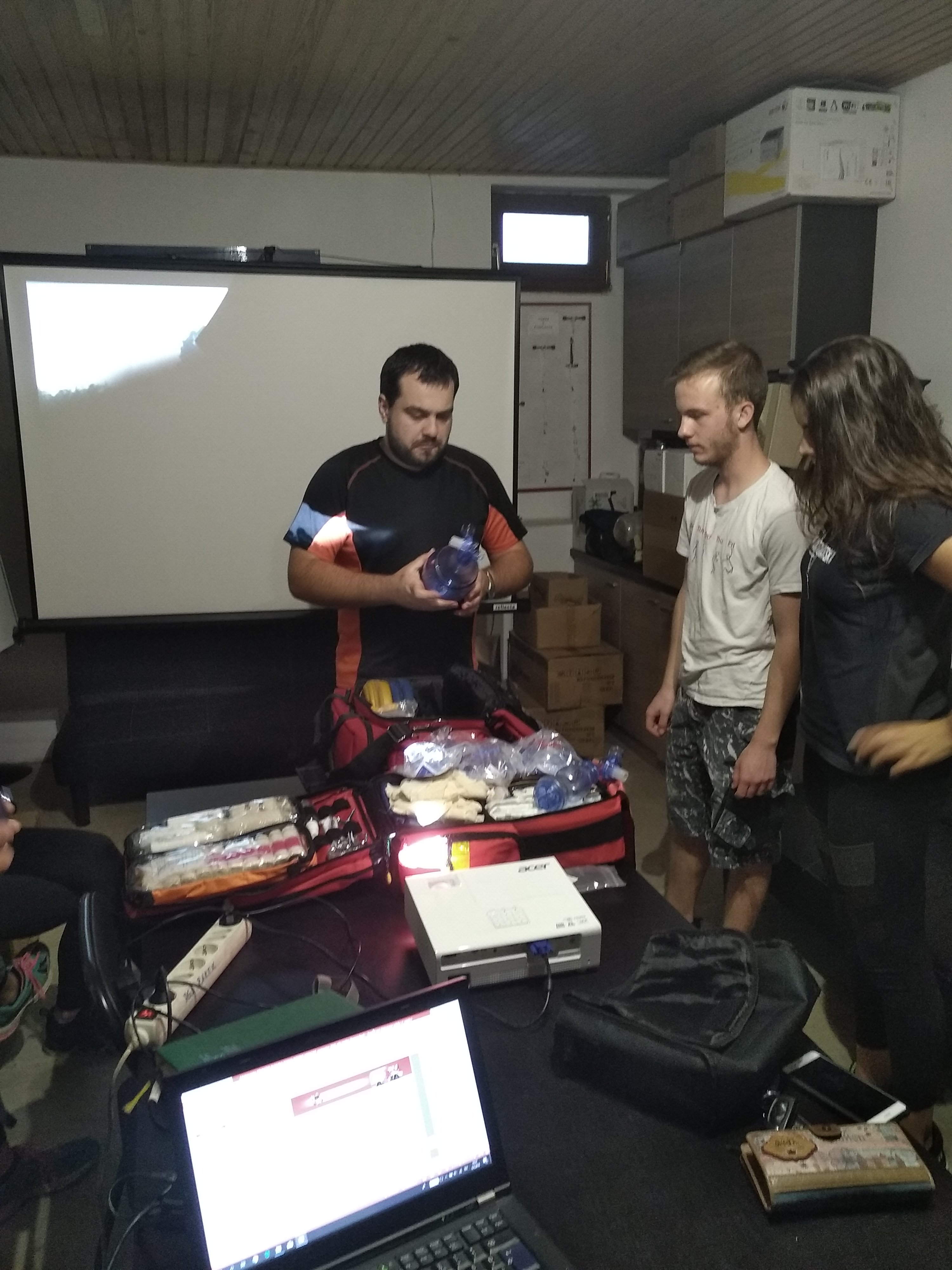 Na tokratnih vajah bolničarjev smo preko teorije obnovili znanje o krvavitvah in nujnih stanjih interne medicine ter se podrobneje dotaknili krvavitev zgornjih okončin. Pregledali smo opremo, ki jo potrebujemo za hitro zaustavitev krvavitev in imobilizacijo poškodovanih udov, katera se nahaja v nahrbtniku s sanitetnim materialom ter pregledali torbo z opremo za nudenje TPO. V nadaljevanju smo na praktičnem delu ponovili osnovne pristope pri realnih situacijah ter vadili scenarije zaustavitve krvavitev in imobilizacije poškodovanih udov (Trebec S.).