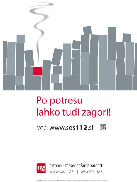 ‘Po potresu lahko tudi zagori!’ je tema letošnjega projekta Oktober – mesec požarne varnosti. Uprava RS za zaščito in reševanje je v sodelovanju z Gasilsko zvezo Slovenije in Slovenskim združenjem za požarno varstvo pripravila Zgibanko 2012. Z gradivom želimo opozoriti prebivalce na nevarnost požara, ki je pogost pojav po potresu, obenem pa podati napotke, kako lahko zmanjšati možnost nastanka požara po potresu. Za naše najmlajše pa so pripravili tudi didaktično igrico za otroke Potres.