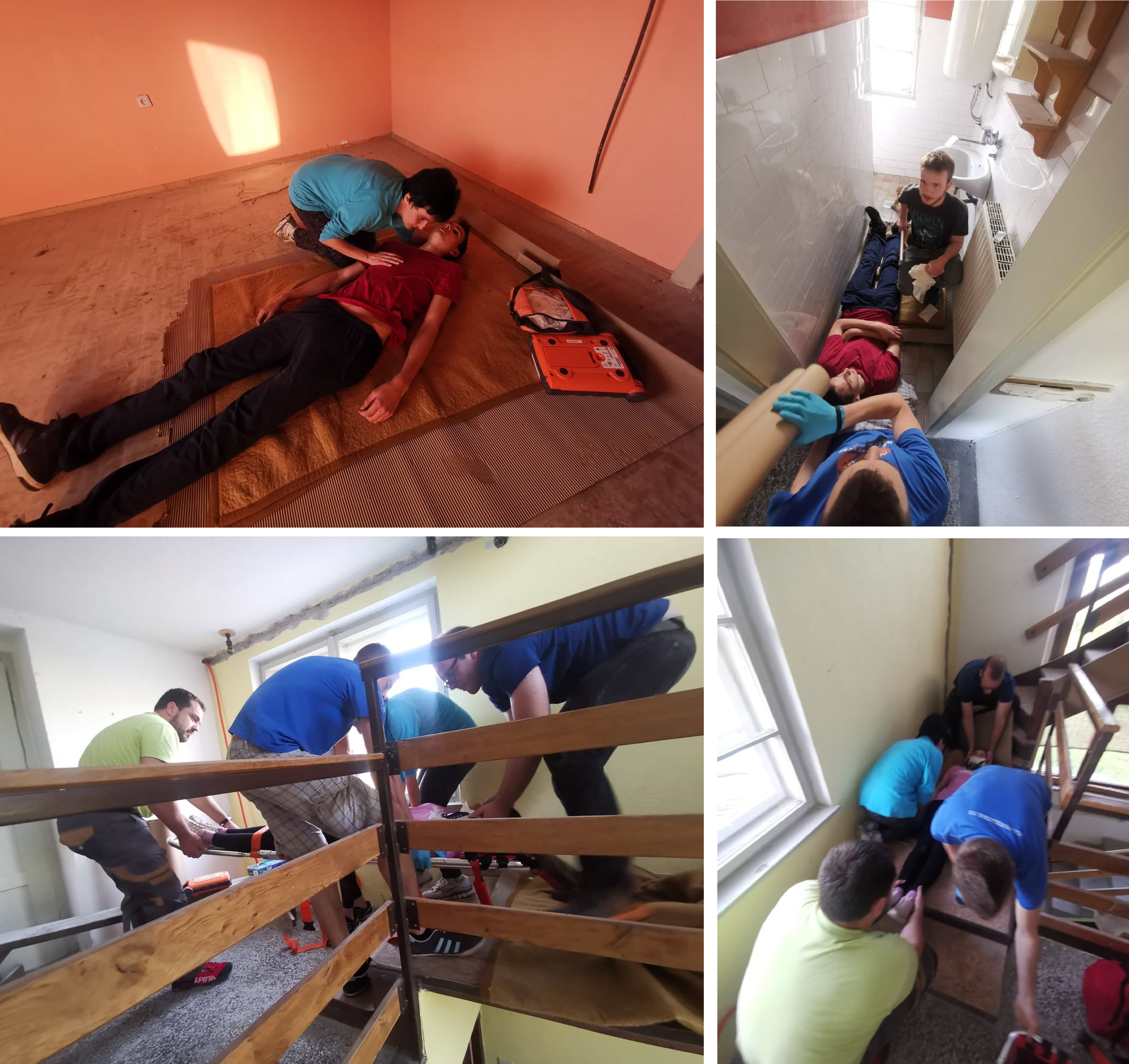 Tokratne vaje bolničarjev smo izvedli v stanovanjskem delu objekta v Ivanjem selu. Bolničarji PGD Ivanje selo in Rakek smo preigrali različne scenarije, ki lahko doletijo prve posredovalce. Tako so ekipe po 3 bolničarjev, kot prvih prispelih na kraj zavarovali kraj intervencije in nudili poškodovancem prvo nujno pomoč, kasneje so se pridružili še ostali bolničarji. Scenariji in poškodbe so bile različne – zaustavitev hude krvavitve na roki zaradi odrezanega prsta, oskrba opekline na roki zaradi nepazljivega dela v kuhinji, sprostitev dihalne poti zaradi dušenja s tujkom in izvajanje temeljnih postopkov oživljanja zardi srčnega zastoja ter imobilizacija in prenos poškodovane osebe, ki je padla in ni čutila nog. (Trebec S.)