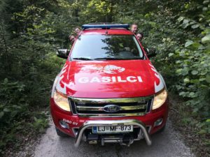 Sledil je štart z avtomobilom in sledenje navodillom preko potne knjige do druge točke. Pri drugi točki je bil »uprizorjen« gozdni požar. Ekipa je imela na razpolago 2 naprtnjači in 3 metle, s katerimi smo morali podirati plastenke rdeče barve, katere so nakazovale požar. Na tej točki smo prejel navodila za naslednjo točko in se odpravili na pot.