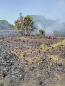 Tretji dan je sledil praktični del tečaja. Na začetku smo se razdelili v dve skupini, prva je imela gašenje z vodo (visoki tlak, mediterani), druga skupina pa je imela gašenje z ročnim orodjem (gasilske metle, naprtnjače, izpihovalniki). Nato so se skupine zamenjale. Na koncu smo imeli nekoliko večjo zaključno vajo.
