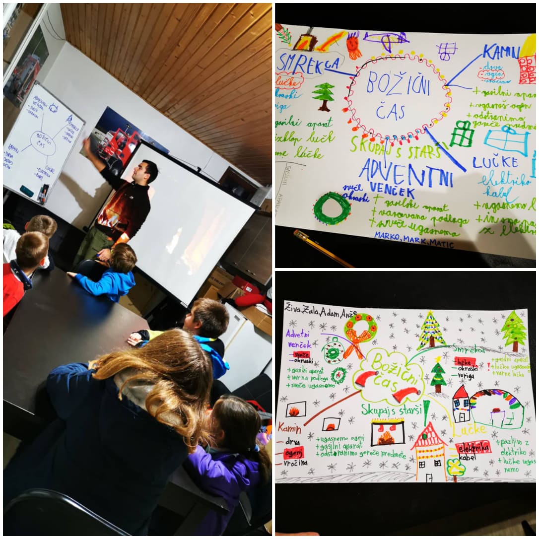 Kot vsako sredo, smo se tudi tokrat srečali z najmlajšimi. Ker je december mesec praznovanj in rajanja ter s tem tudi uporabe različnih novoletnih okraskov, ki lahko povzročijo požar ali drugo nevarnost, smo se odločili, da na to temo ustvarimo miselne vzorce. Tako smo se pogovarjali o varni uporabi novoletnih okraskov, lučk, svečk, in odprtega ognja. (N. Milošević)