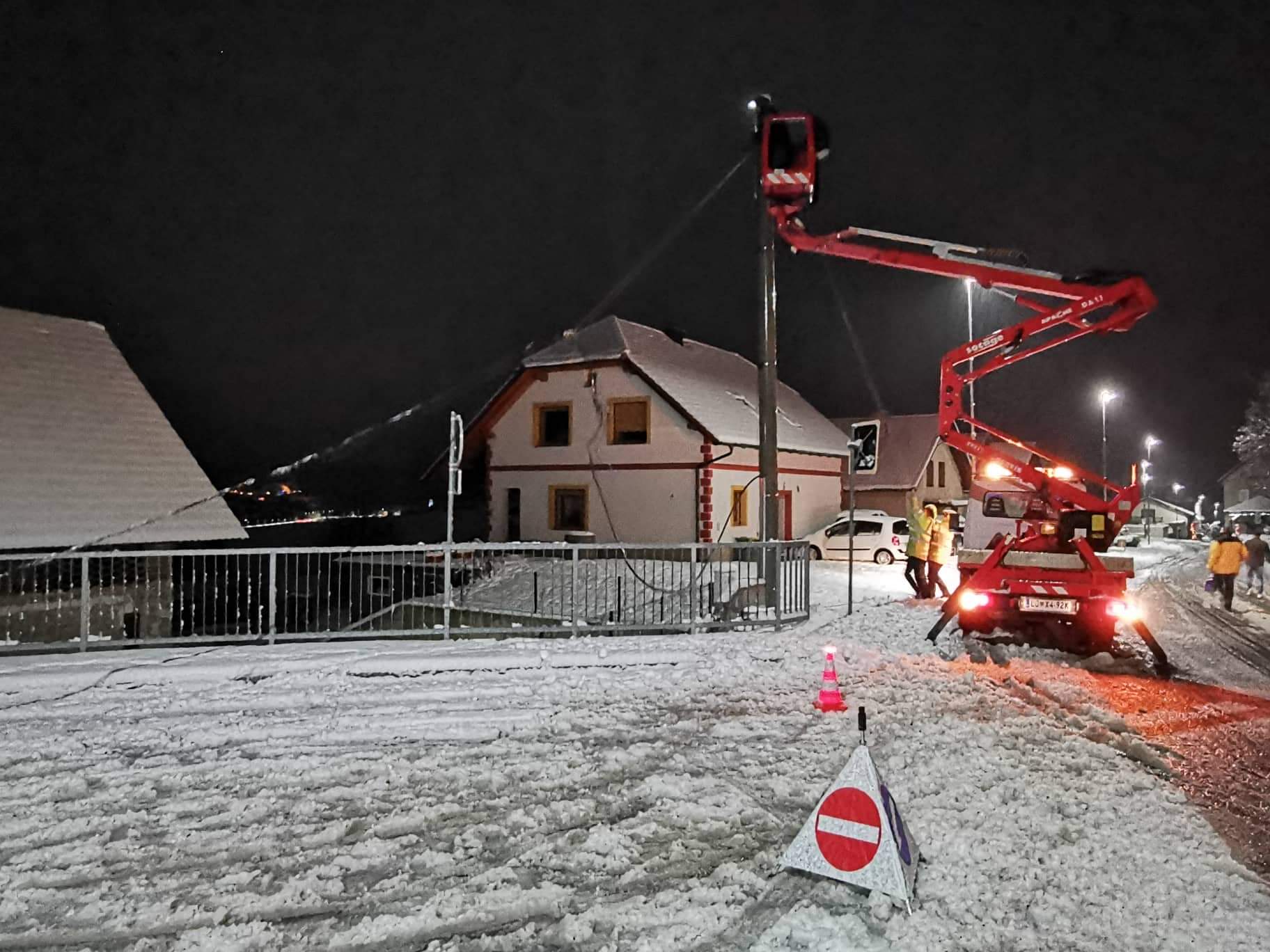 Poročilo s SPINa: Ob 21:35 je v ulici Na vasi na Rakeku, občina Cerknica, pod težo snega popustil nosilec električnega vodnika in padel na cestišče. Gasilci PGD Rakek so zavarovali kraj dogodka do prihoda dežurnih vzdrževalcev elektro podjetja, ki so nastalo situacijo sanirali. (foto: N. Milošević)