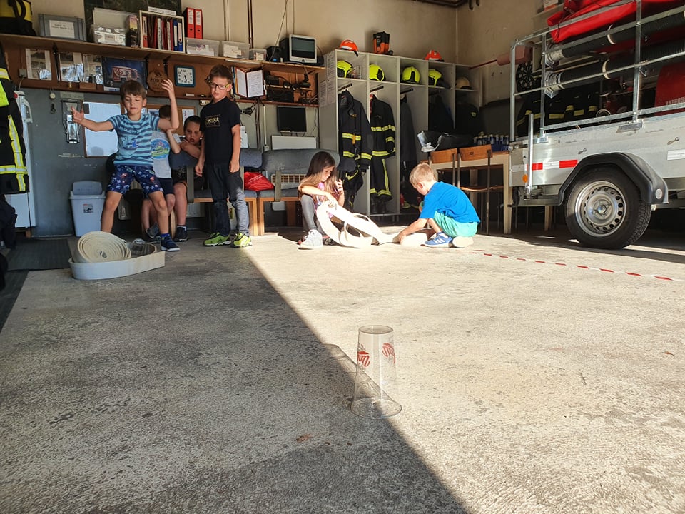 Na prvih vajah v letošnjem šolskem letu so pionirji skozi različne družabno-gasilske igre ponovili praktično znanje, ki so ga nabrali v prejšnji sezoni. Na poligonu so morali splesti osnovne gasilske vozle, zbiti tarčo z vodno brentačo in z metanjem cevi podreti tarče.