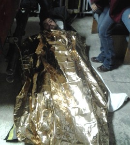 V sredo, 31.10.2012 so potekale druge vaje bolničarjev. Tokratne vaje so temeljile na praktičnem delu, ki se je izvajal na 4 točkah in sicer: izdelava kompresijske obveze, izdelava esmarchove preveze (!), oskrba poškodbe trebuha in pneumotoraksa. Bolničarji so bili razdeljeni na dve skupini s po 4 – 5 člani. Po vsaki opravljeni vaji se je vršila rotacija med člani skupine, tako je bil vsak enkrat vodja skupine. Na koncu je sledila še vaja presenečenja z 3 poškodovanimi, tu sta delali obe skupini skupaj – seveda po navodilih vodje. Naslednje vaje bodo na temo opeklin, pogledali pa si bomo tudi oskrbo zlomov, zvinov in izpahov.