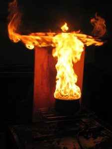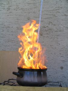 Plameni olja ali masti v loncu hitro dosežejo višino pol metra