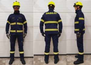 - Zaščitna intervencijska obleka Prevent Fire Stedair (hlače) ali Pyroman X-2D proizvajalca Teh-projekt (hlače)
